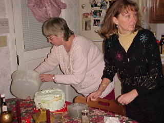 Sue and Kathy prepare the goodies.