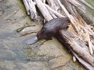 A Beaver Makes Its Way Over A Dam