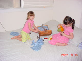 | Table Is All Set Now | Girls Playing With Picnic Basket |