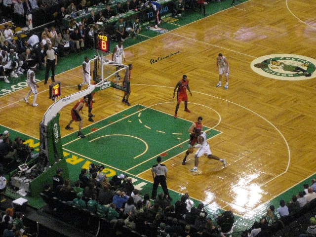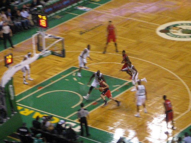 | A Raptor Drives On Shaq | Rondo, Pierce, Shaq, Big Baby and Ray Allen |