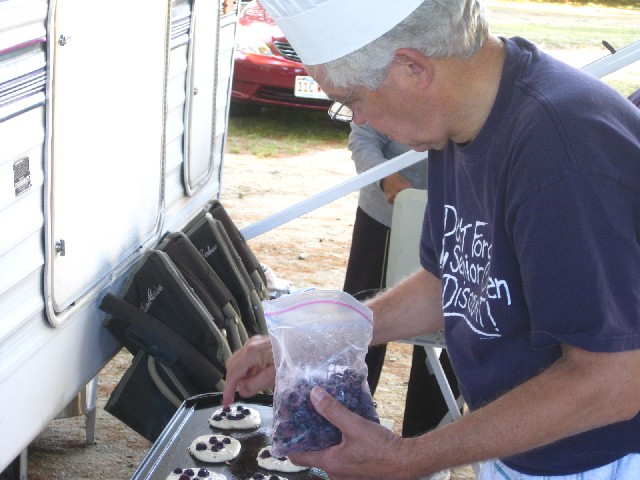 Bob Tops Pancakes With Blueberries