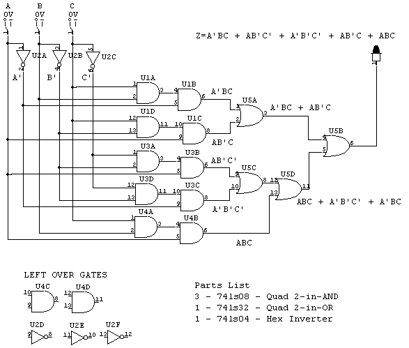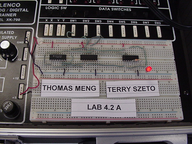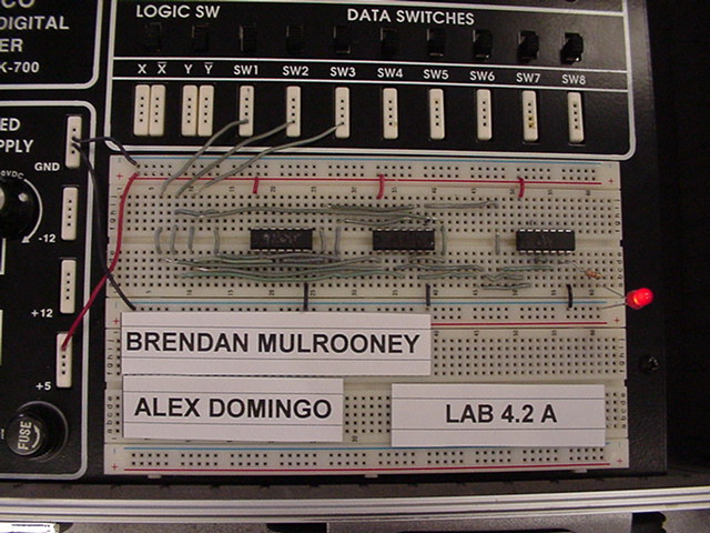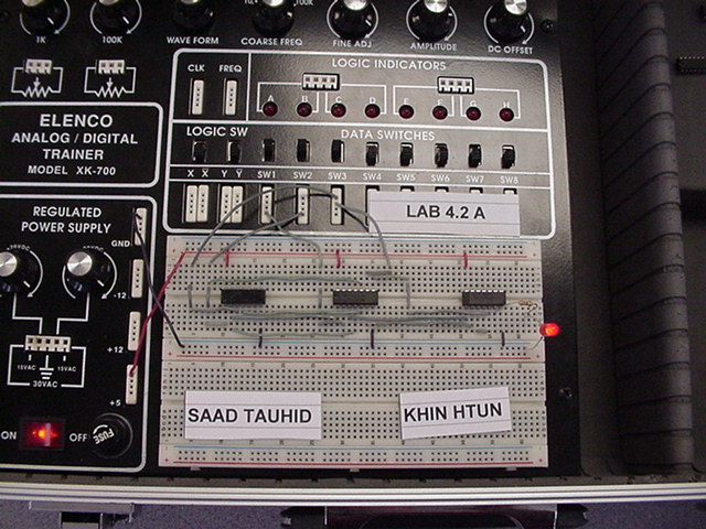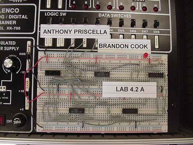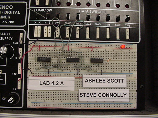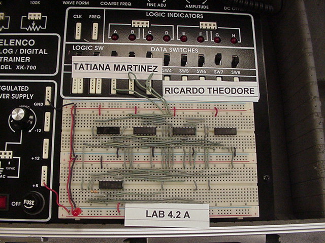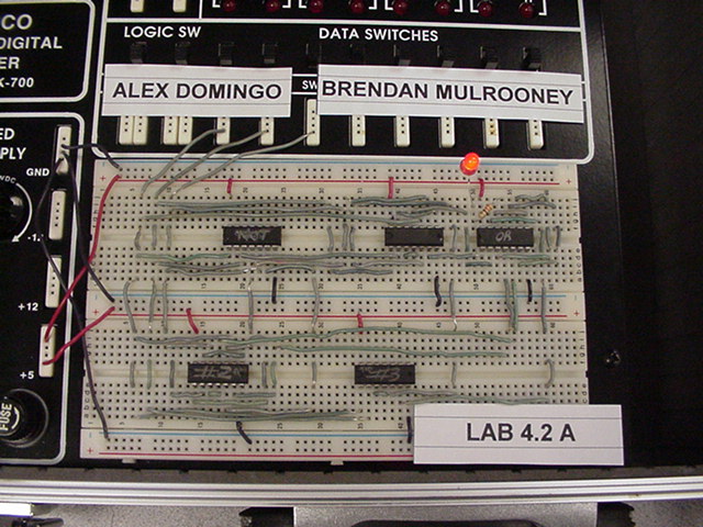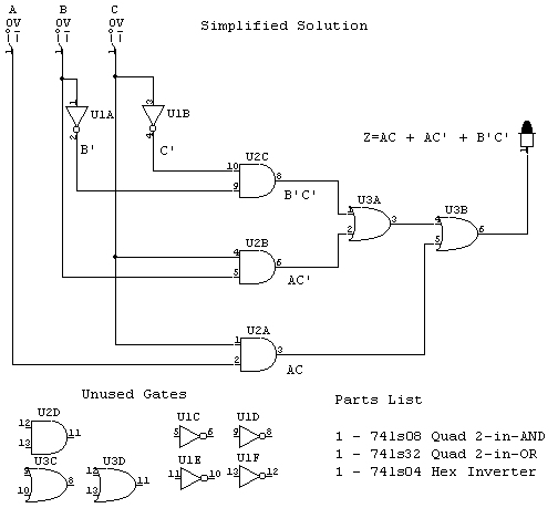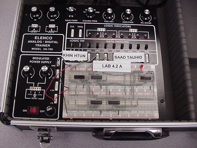 The following photos are of two stages of building a Digital Eletronics circuit. The left photo is the unsimplified version and the right photo is a simplified version of exactly the same digital function. The simplification process was achieved by using Boolean algebra and DeMorgan's Theorms to simplify the circuit to its minimum component needs. Unsimplified CircuitPlease notice that no two circuits are exactly alike. This is due to the circuit layout procedure which encourages the students to engineer their circuits to use the least amount of wiring to accomplish the digital circuits function. Planning well ahead of time can reduce the amount of wiring, time spent building and troubleshooting. Simplified CircuitBravo to the class!! Mr. McG. |